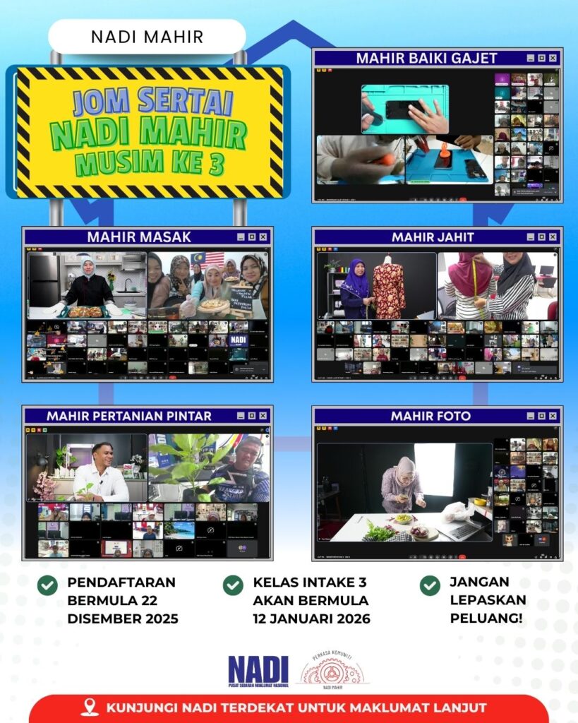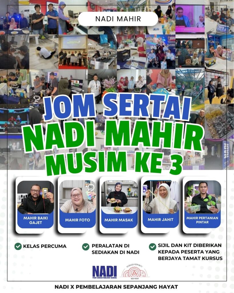 Kepada komuniti yang berminat untuk menyertai kelas NADI MAHIR Musim Ketiga. Boleh menghadiri atau menghubungi NADI berdekatan anda.